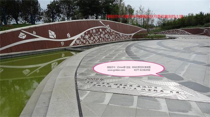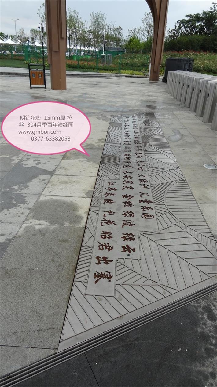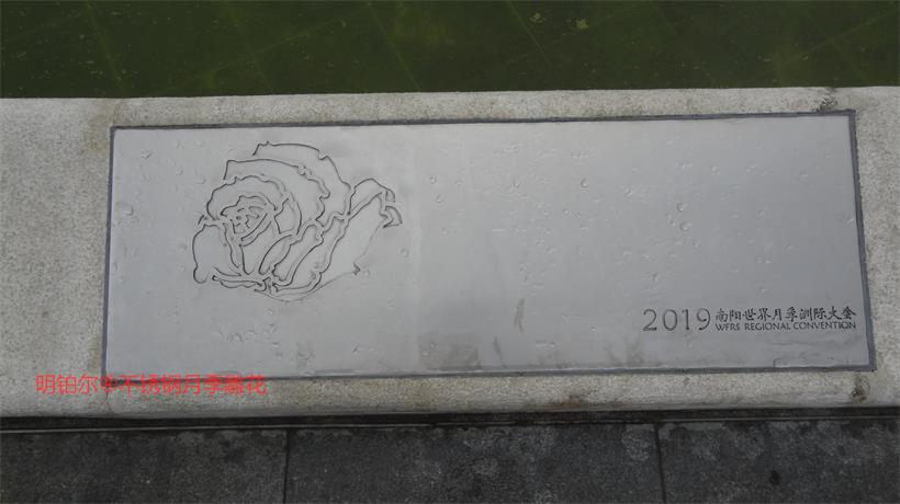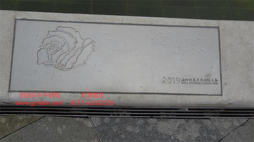 明鉑爾?不銹鋼月季園主入口大門304不銹鋼10毫米厚欄桿,6毫米厚水池10塊月季花圖,利用不銹鋼的拉絲紋路反光色差經(jīng)驗(yàn),解決了北京設(shè)計(jì)院林博士要求很難做到的不銹鋼激光雕刻2毫米深度的月季花圖效果,經(jīng)過我數(shù)10次的大樣,努力,研究終于做出了最佳理想的效果,出乎意料之外的精美,背后多少時(shí)間的付出,不惜一切代價(jià)的努力方能成就精品。1957年至今13塊月季名稱地雕,近200平方擋墻6毫米月季花雕刻圖,這些所有的產(chǎn)品沒處細(xì)節(jié),每一條線都經(jīng)過CAD在電腦修改檢查再修改再檢查,打樣再修改再細(xì)化的一個(gè)漫長的圖紙修改過程最終敲定的方案效果,擋土墻鉚釘內(nèi)陷,我們加焊接整體再拉絲處理,每一處方案都是創(chuàng)最優(yōu)品質(zhì)去展現(xiàn)給南陽不銹鋼月季藝術(shù)的高水準(zhǔn),為迎接全國人民的到來參觀,憑著高要求做我們最優(yōu)的產(chǎn)品奉獻(xiàn)給南陽這片土地…