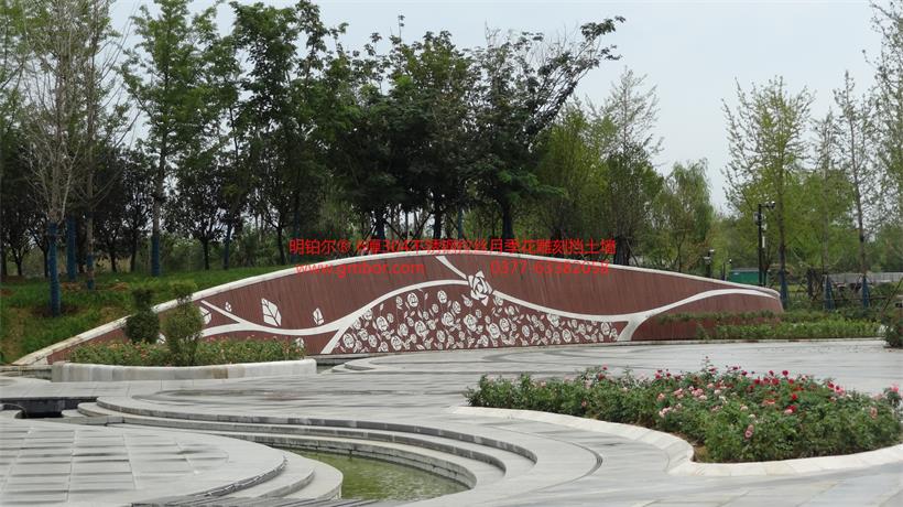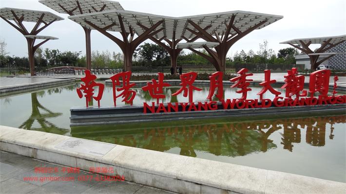 2019世界洲大會(huì)-南陽月季園北大門入口欄桿 地雕 月季花304不銹鋼裝飾工程
